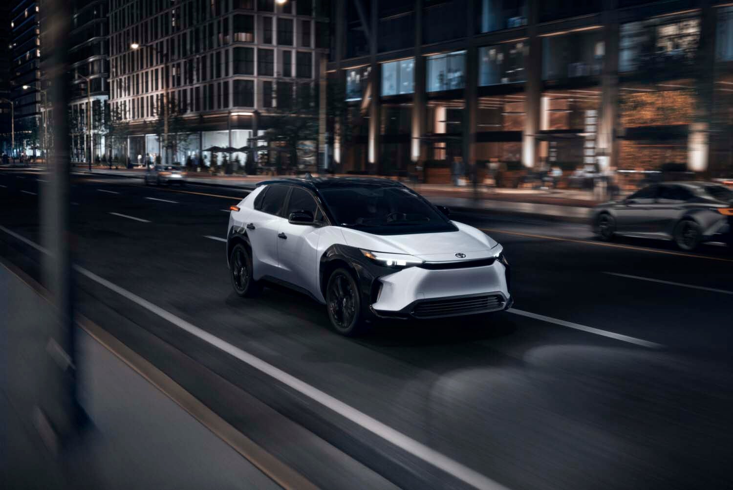 Offering a bolder style, the 2025 bZ4X Nightshade comes in a choice of two-tone exterior color schemes. Some shoppers may prefer an intriguing all-black exterior.