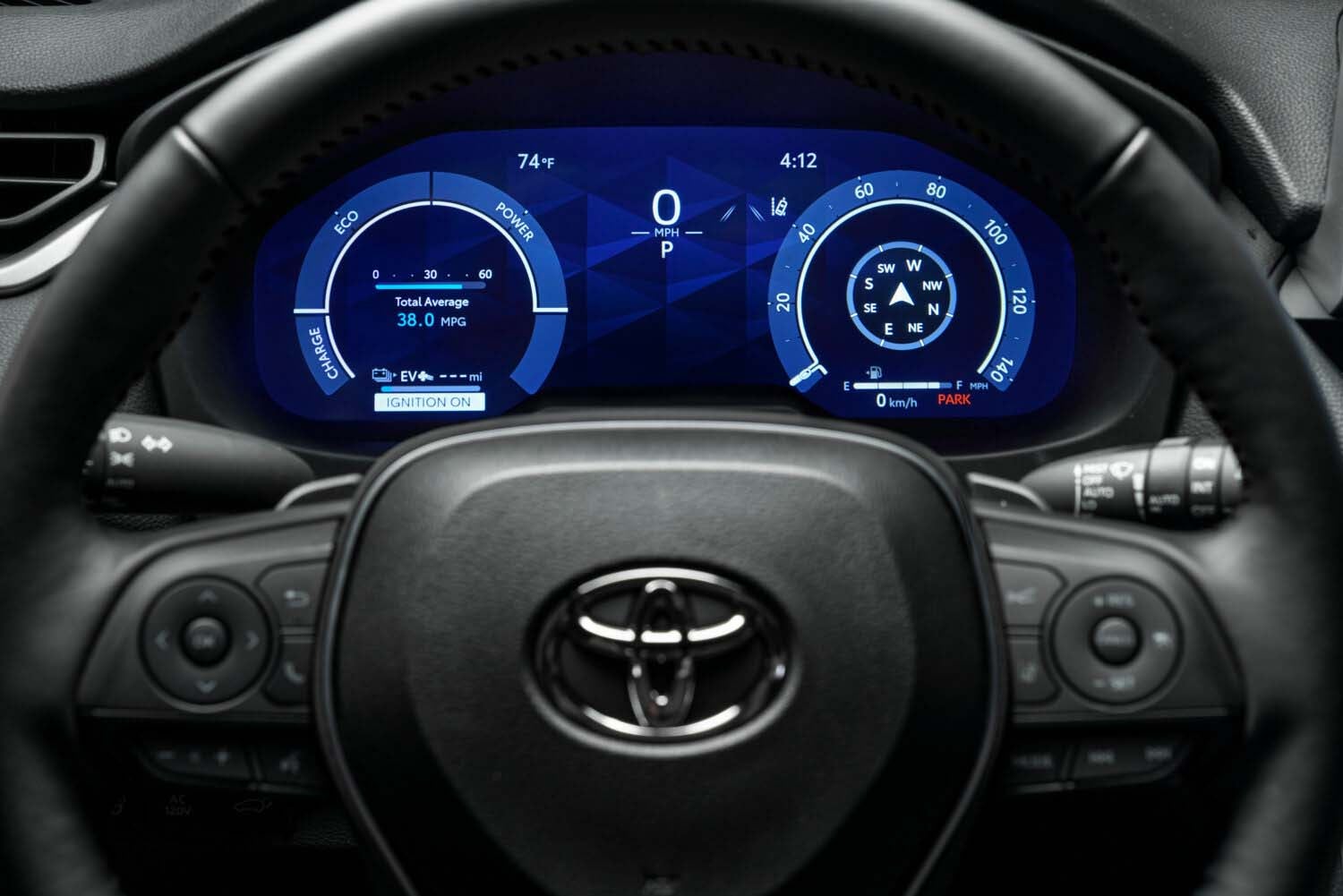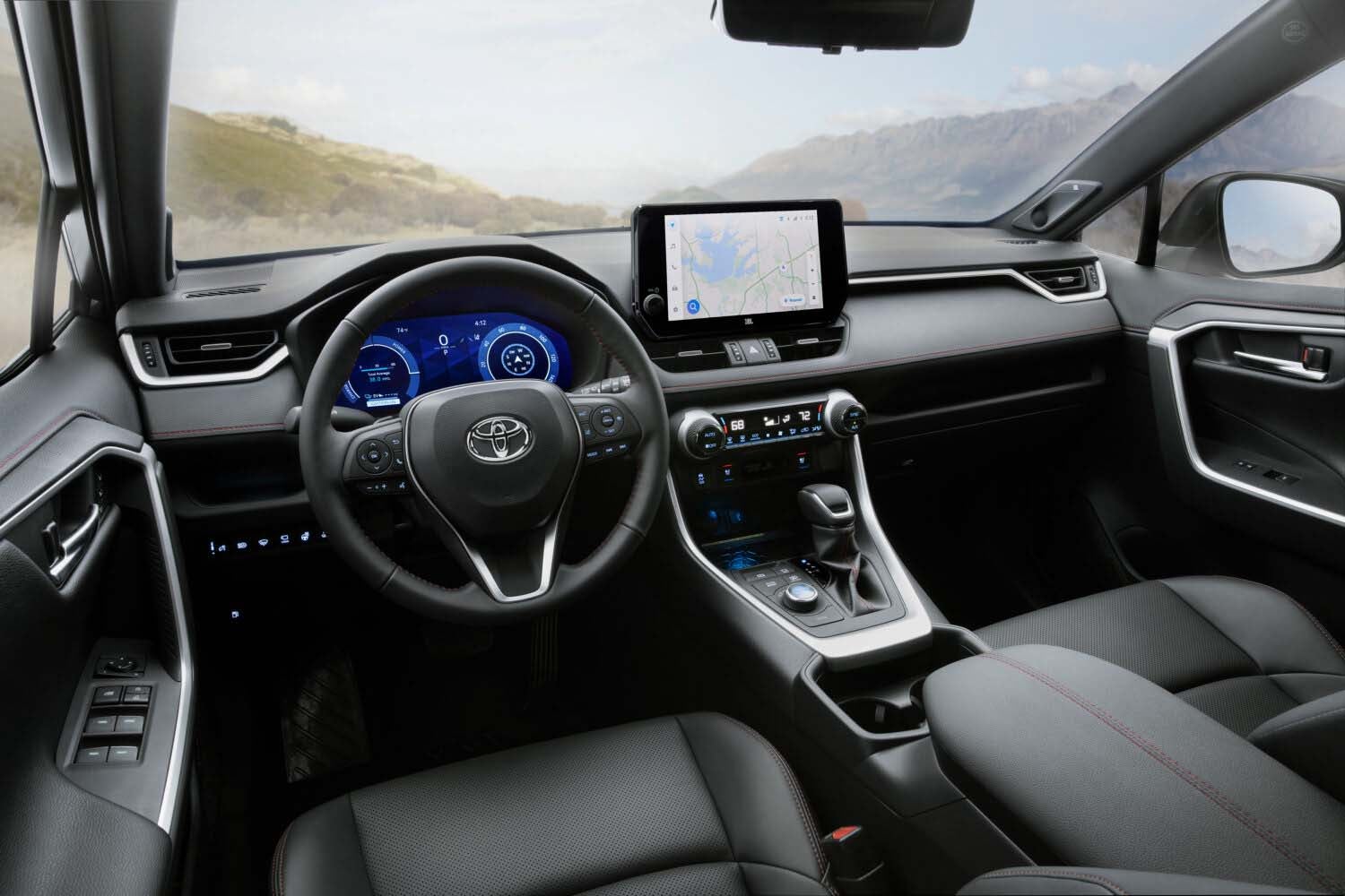 Color options include a handsome ash, a rich mocha, and an inviting Nutmeg. Exclusive RAV4 Hybrid XSE models combine black Softex with blue stitching and, for extra drama, there’s blue ambient lighting.