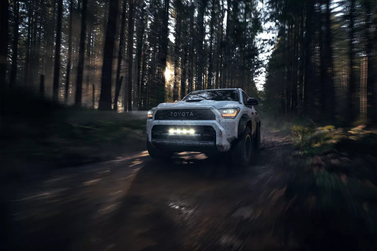 The top two off-road models deserve special mention. The 2026 4Runner Trailhunter is the "Pack-Horse"—designed specifically for overlanding and extended off-grid adventures. It features Old Man Emu 2.5-inch forged monotube position-sensitive shocks, an ARB roof rack ready for gear, and a high-mount air intake for water crossings. Bronze-finished wheels add to its dramatic curb appeal.