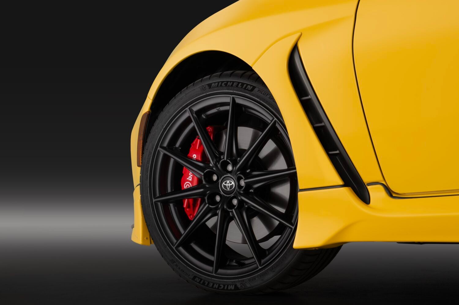 Sports car proportions define the standard GR86 design language. Its long hood and short rear deck create an aggressive profile. Aerodynamic elements include functional front fender vents that channel airflow around the chassis.