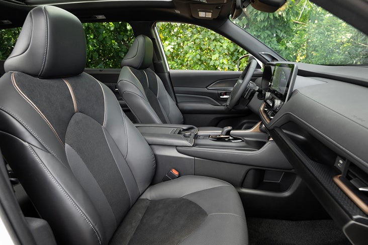 Interior space prioritizes passenger comfort across all three rows. The modified TNGA-K platform provides a 116.1-inch wheelbase that creates generous legroom throughout the cabin. Front passengers enjoy available 10-way power driver and 8-way power passenger seat adjustments.