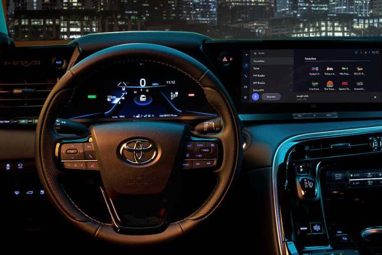 As you’d hope in a futuristic car, the new Toyota Mirai cockpit is very modern, too. Its contemporary look is anchored by dual screens, and its connectivity is enhanced by Apple CarPlay and Android Auto.
