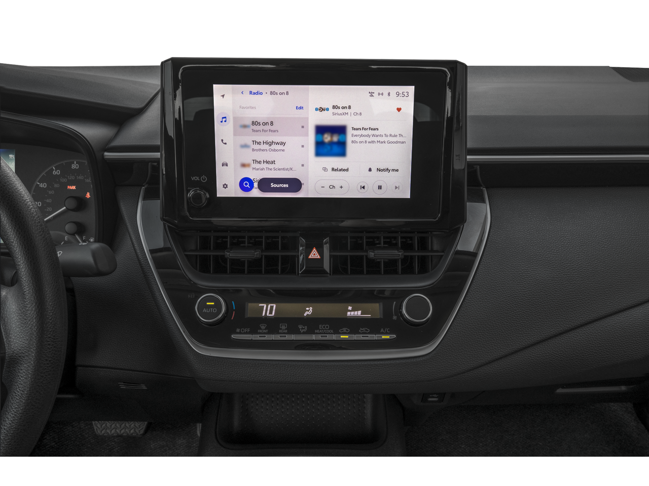 - 8-in. Toyota Audio Multimedia touchscreen with six speakers, wireless Apple CarPlay® 11& Android Auto™ 4compatibility, SiriusXM® 41 3-month trial subscription. See toyota.com/audio-multimedia for details.