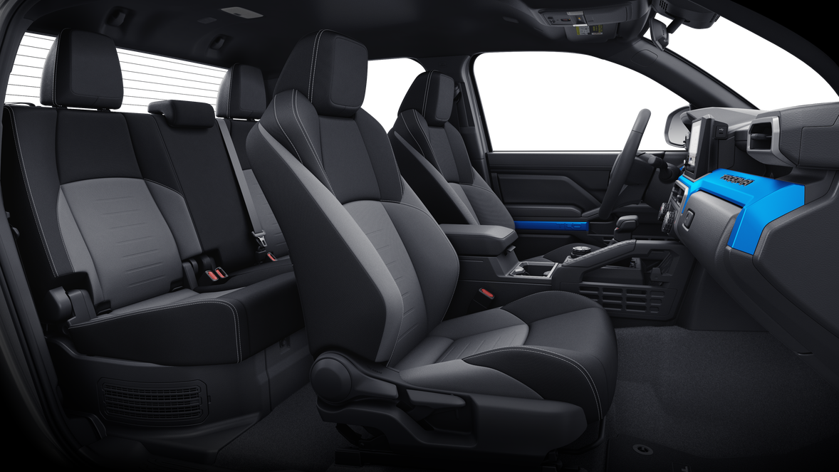 TRD Sport Upgrade Package (i-FORCE MAX) — includes fabric-trimmed seats with heated 8-way power-adjustable front seats, leather-trimmed heated steering wheel, JBL® 28 Premium Audio with JBL® FLEX 29 portable speaker, Qi-compatible wireless charging, 44 Front and Rear Parking Assist with Automatic Braking (PA w/AB), 36 prewired auxiliary switches, Integrated Trailer Brake Controller (ITBC), 27 Digital Key 14 capability, and power horizontal rear window