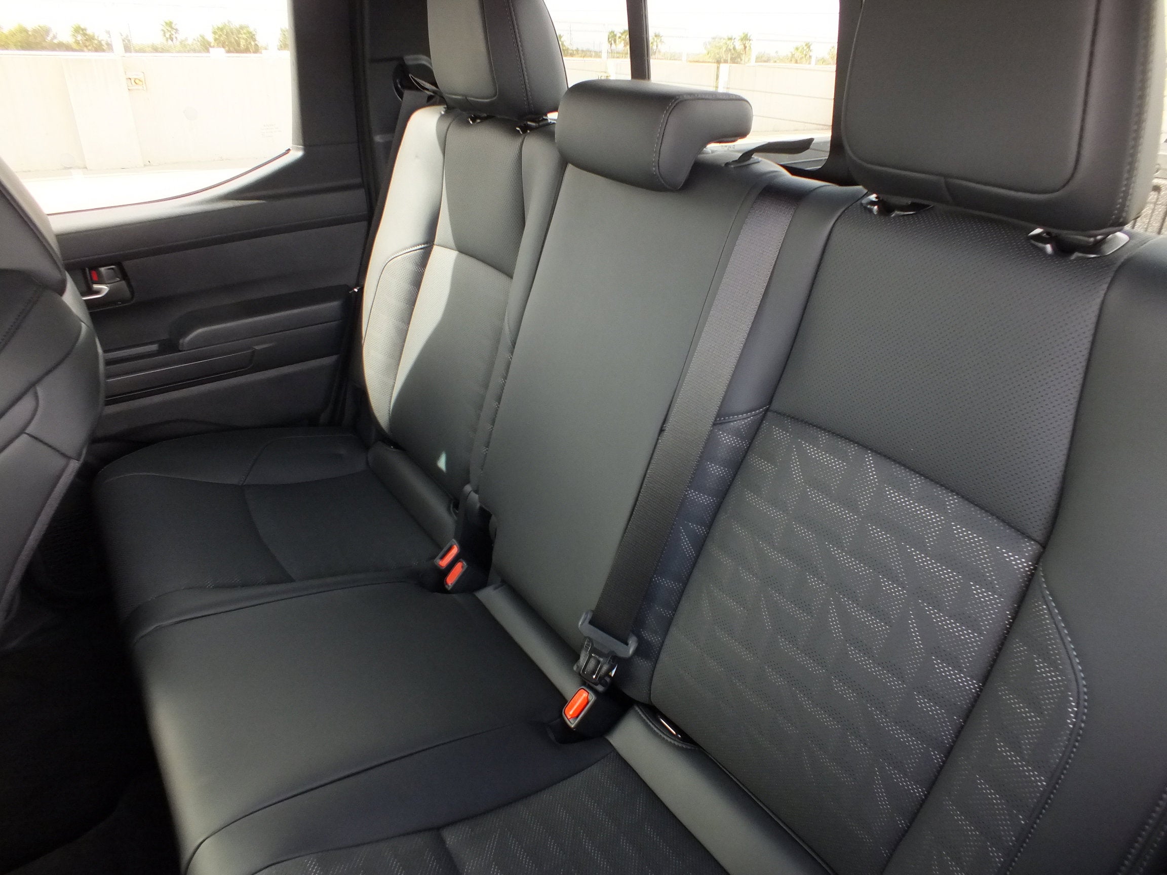 - TRD Sport Premium Package (2WD) — includes SofTex®-trimmed seats with heated and ventilated 8-way power-adjustable front seats leather-trimmed heated steering wheel 14-in. Toyota Audio Multimedia display Panoramic View Monitor (PVM) 39 JBL® 30 Premium Audio with JBL® FLEX 31 portable speaker moonroof Qi-compatible wireless charging 46 dual zone automatic climate control Front and Rear Parking Assist with Automatic Braking (PA w/AB) 38 and Pedestrian Detection 44 digital rearview mirror Integrated Trailer Brake Controller (ITBC) 29 power open/close tailgate 45 61 Digital Key 16 capability 400W/120V 1 AC power inverter and power horizontal rear window