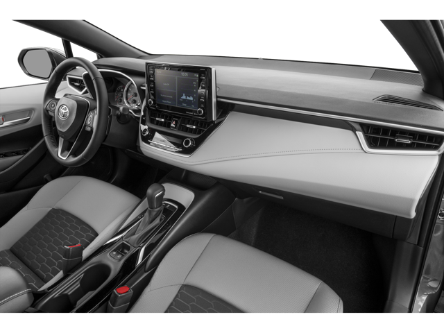 The regular SE offers a standard black or Moonstone upholstery. Premium black fabric dresses the SE Nightshade seats. Both the black and moonstone colors are available in combination leather on the 2022 Toyota Corolla Hatchback XSE trim level.