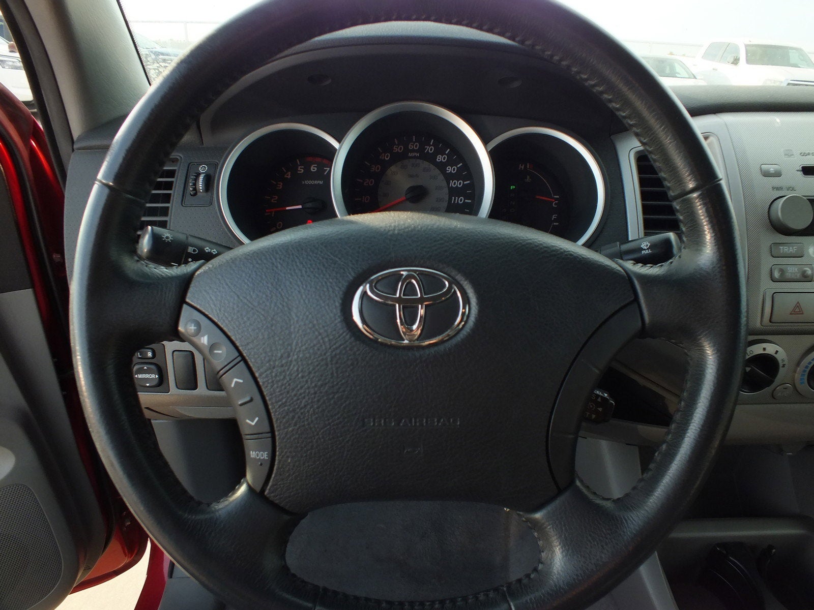 The exterior showcases the Tacoma's timeless, rugged design, highlighted by the Impulse Red Pearl finish and a strong, upright stance that continues to make this generation a favorite among truck buyers. Its durable composite bed and practical design reinforce why the Tacoma remains one of the most trusted trucks on the road.
