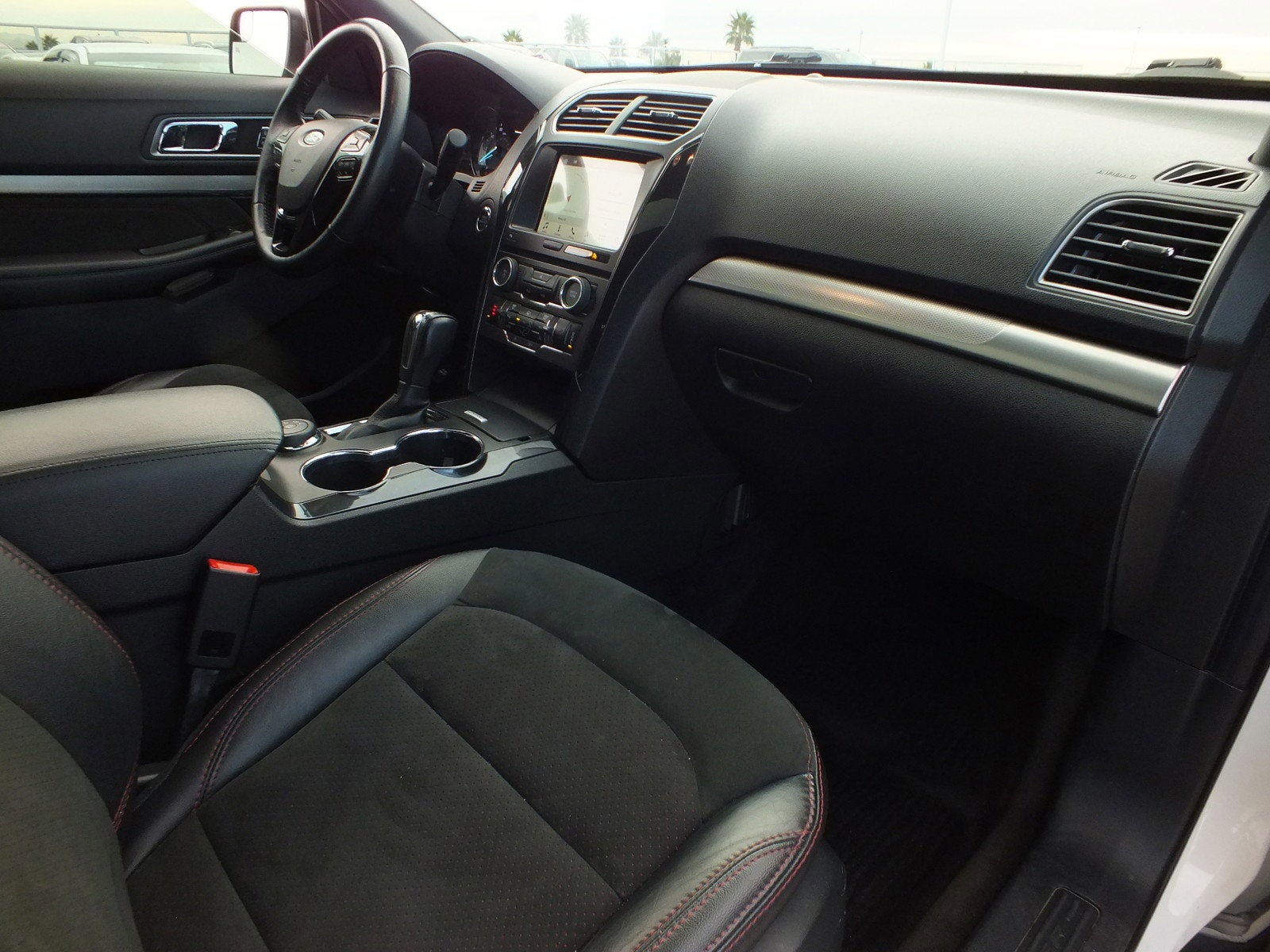 The White Platinum Metallic Tri-Coat exterior gives this Explorer a refined, premium appearance, enhanced by bold styling cues and a commanding road presence. Inside, the Ebony Black leather and suede-trimmed seating creates a comfortable, upscale cabin with seating for passengers across three rows. The interior layout is spacious and practical, offering flexible cargo options and excellent visibility for both driver and passengers.