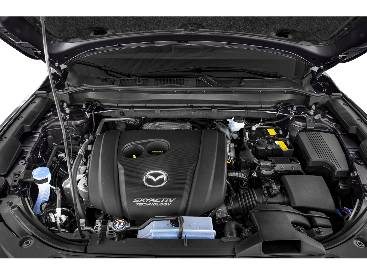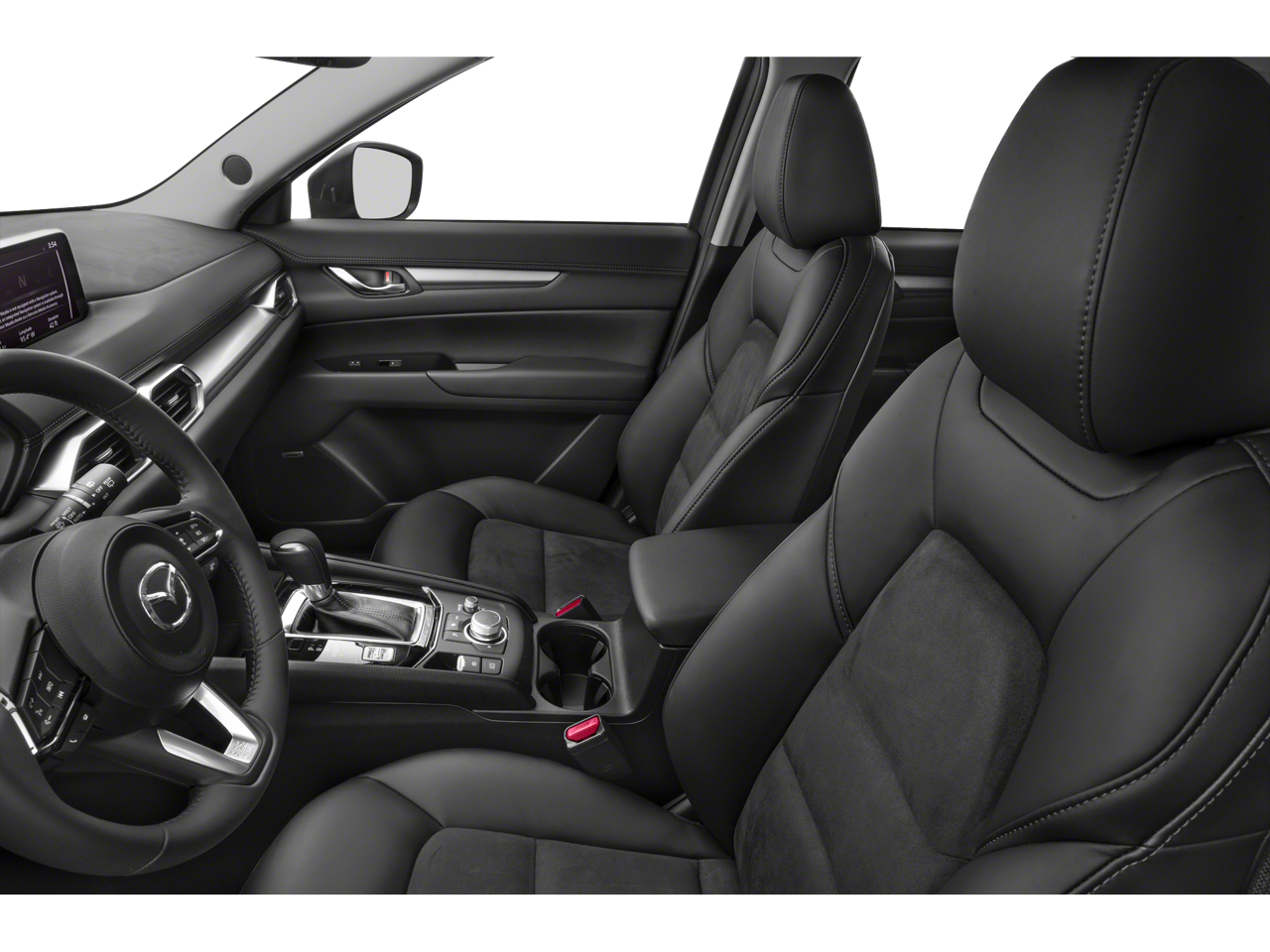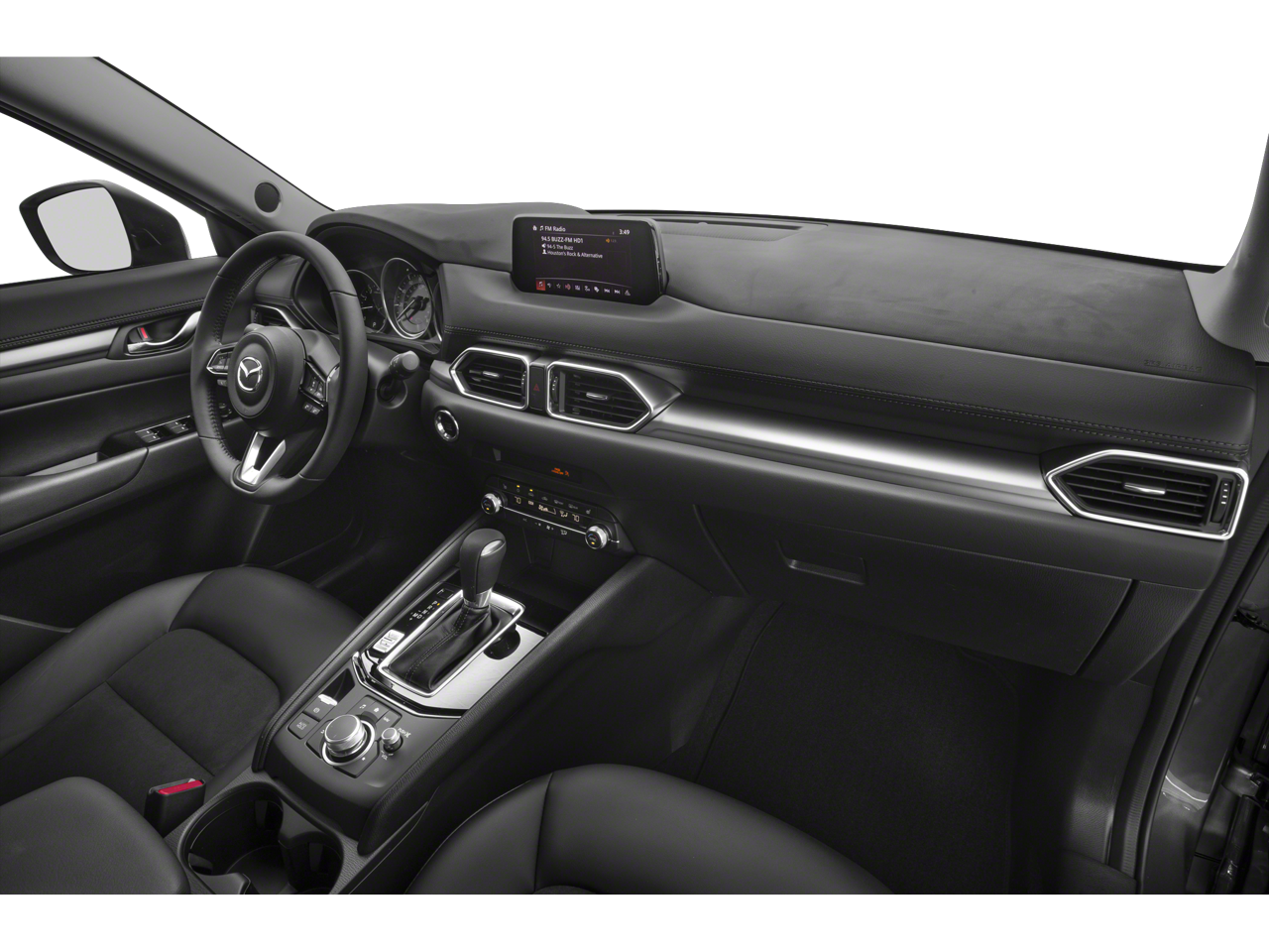 Inside, the Black interior offers a refined and comfortable cabin with premium touches throughout. Features include leatherette-trimmed seating, heated front seats, Bose premium audio system, Mazda Connect infotainment system, power rear liftgate, and a power sliding moonroof, delivering both comfort and convenience.