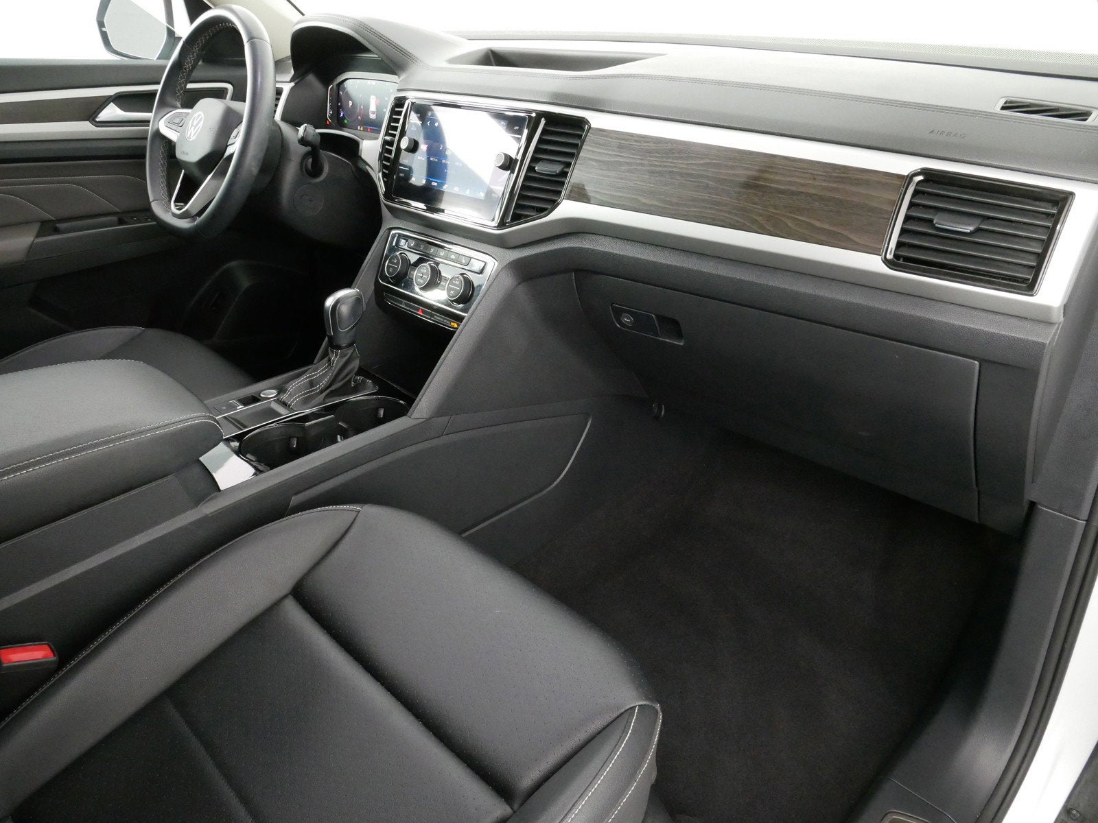 The Pure White exterior gives this Atlas a clean and modern look, while the Titan Black interior with perforated V-Tex leatherette seating provides a comfortable and durable cabin designed for families. Inside, you'll find a spacious layout with three-row seating, flexible cargo space, and thoughtful storage throughout, making it ideal for both passengers and gear.