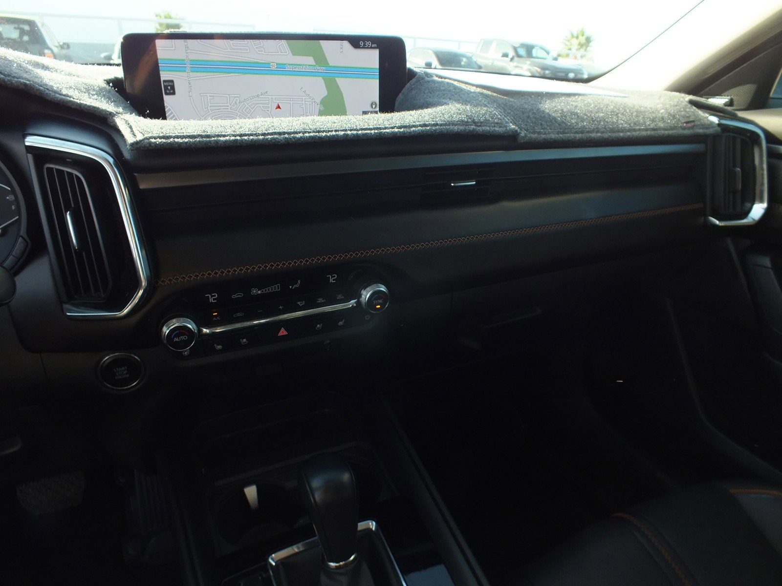The interior reflects Mazda's premium craftsmanship with a driver-focused layout and high-quality materials throughout. The Black and Brown leather-trimmed cabin features heated and ventilated front seats, a head-up display, digital instrumentation, ambient interior lighting, and a spacious cargo area with thoughtful storage solutions. Technology is seamlessly integrated with a large infotainment display, Bluetooth® connectivity, navigation capability, real-time traffic display, and a 12-speaker premium audio system that elevates every drive.