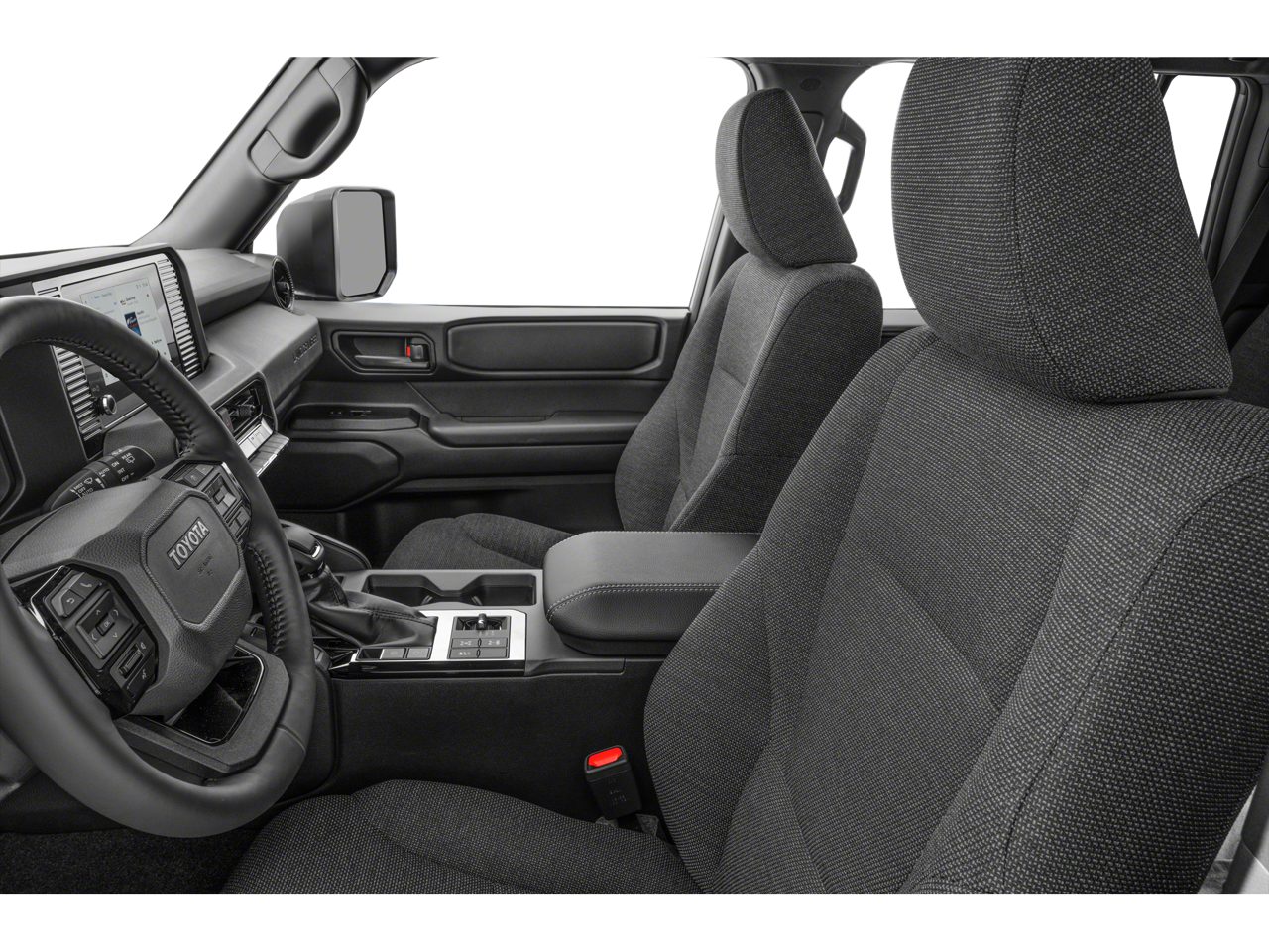 Inside, the Land Cruiser delivers a refined yet durable cabin designed for comfort and adventure. The Black interior features premium materials, metal-look trim accents, a leather gear shifter, and versatile seating with a 60/40 split-folding rear seat to adapt easily for passengers or cargo. Modern connectivity features include Bluetooth® wireless capability, streaming audio, and multiple display screens to keep you informed and entertained on every drive.